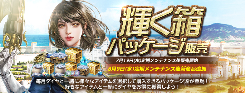 | 7月19日 | 【8月23日定期メンテナンス時追記】「輝く箱パッケージ」販売 | |