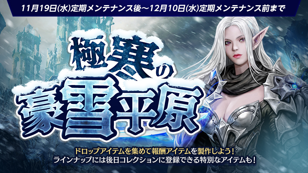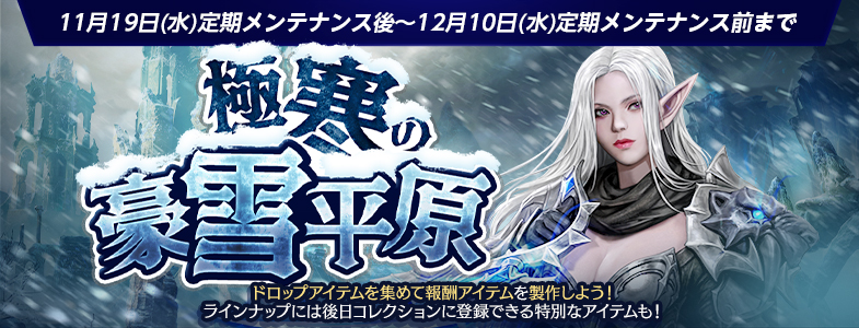 | 11月26日 | 【2025年11月26日(水)定期メンテナンス時追記】「極寒の豪雪平原」開催 | |