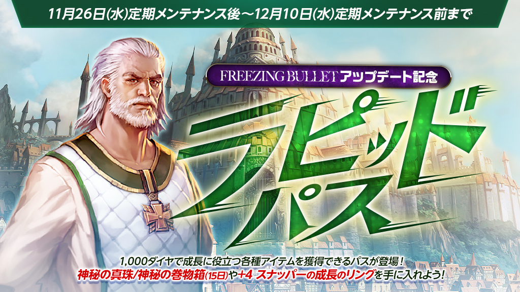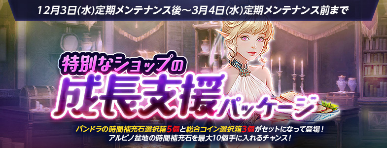 | 11月26日 | 【2025年11月26日(水)定期メンテナンス時更新】「リズの成長支援パッケージ」販売 | |