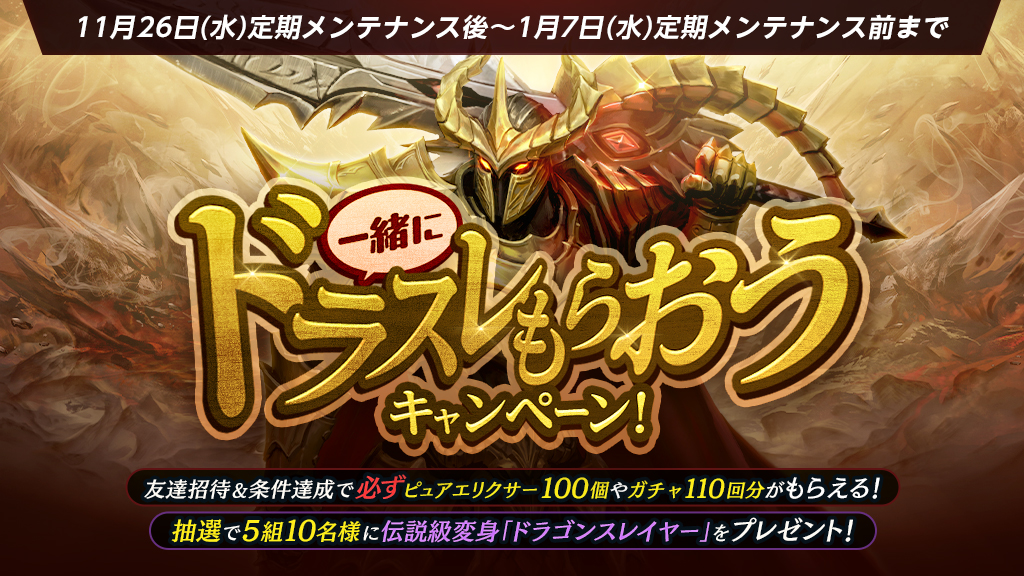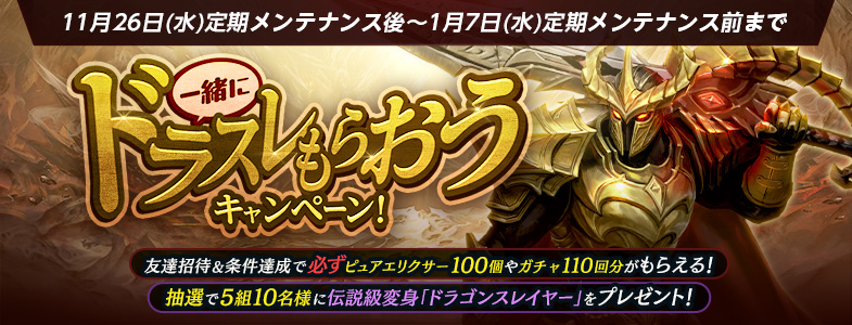 | 11月26日 | 「一緒にドラスレもらおうキャンペーン」開催 | |