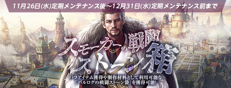 | 11月26日 | 【2週目更新】「スモーカーの戦闘ストーン箱」販売 | |