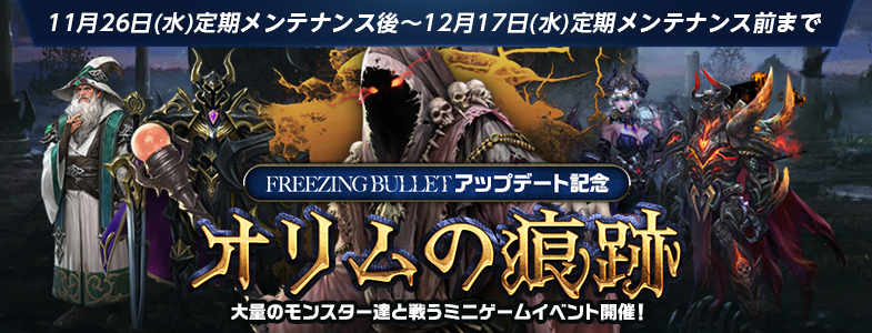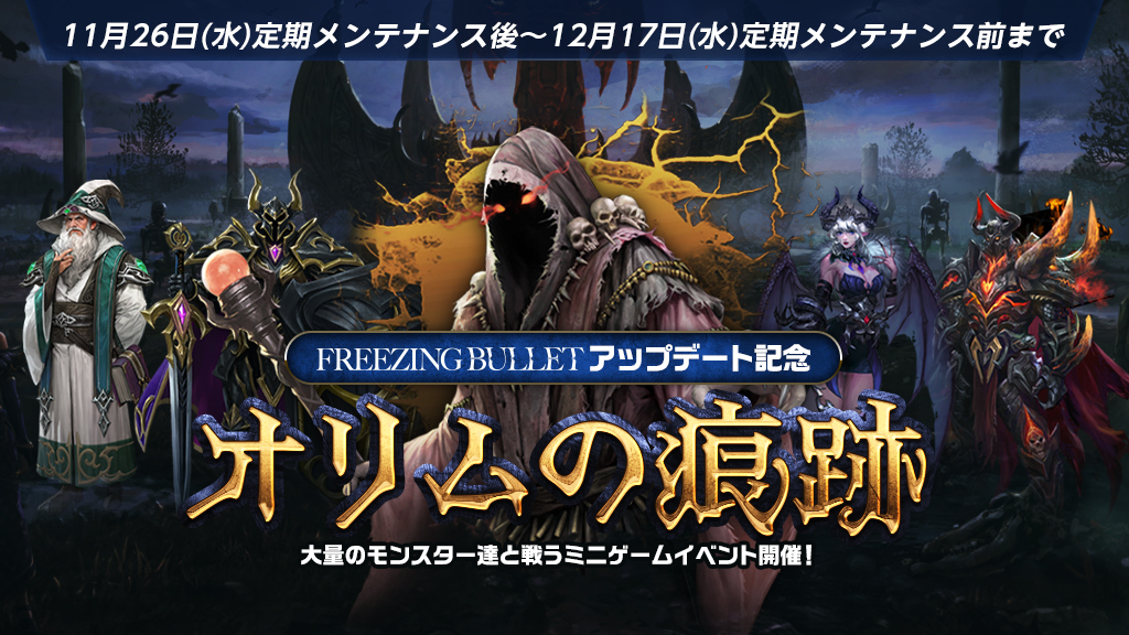 | 11月26日 | 【2025年12月3日(水)定期メンテナンス後追記】「オリムの痕跡 シーズン9」開催 | |