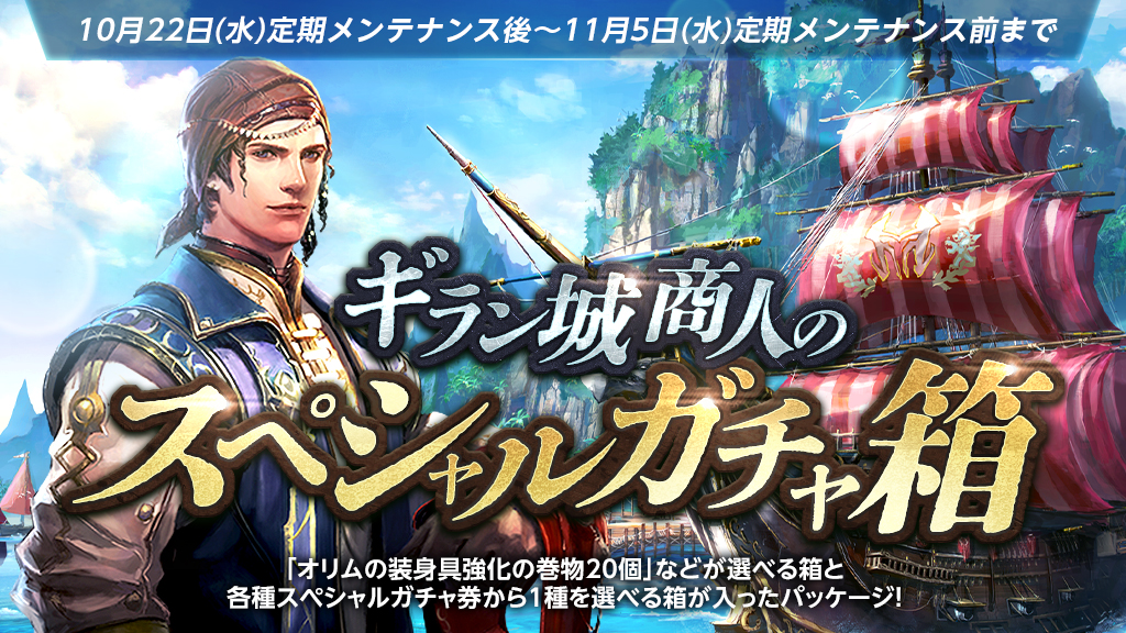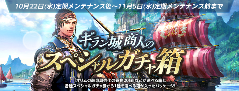 10月22日 NEW 「ギラン城商人のスペシャルガチャ箱」販売