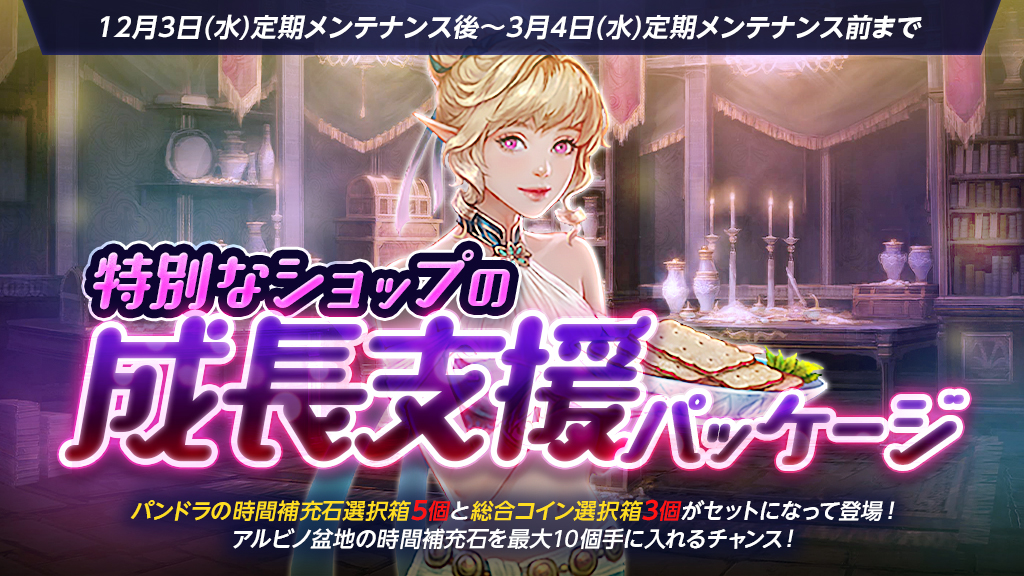 | 11月26日 | 【2025年11月26日(水)定期メンテナンス時更新】「リズの成長支援パッケージ」販売 | |