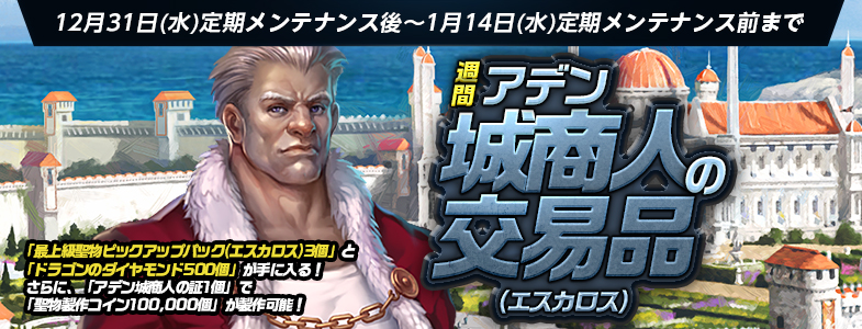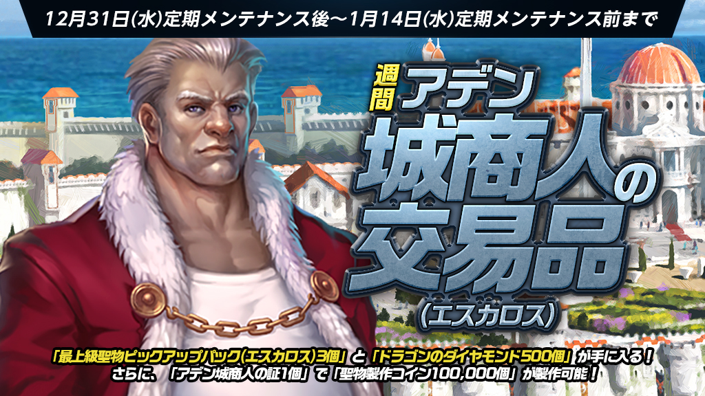 | 12月31日 | NEW | 「アデン城商人の交易品(エスカロス)」販売 |