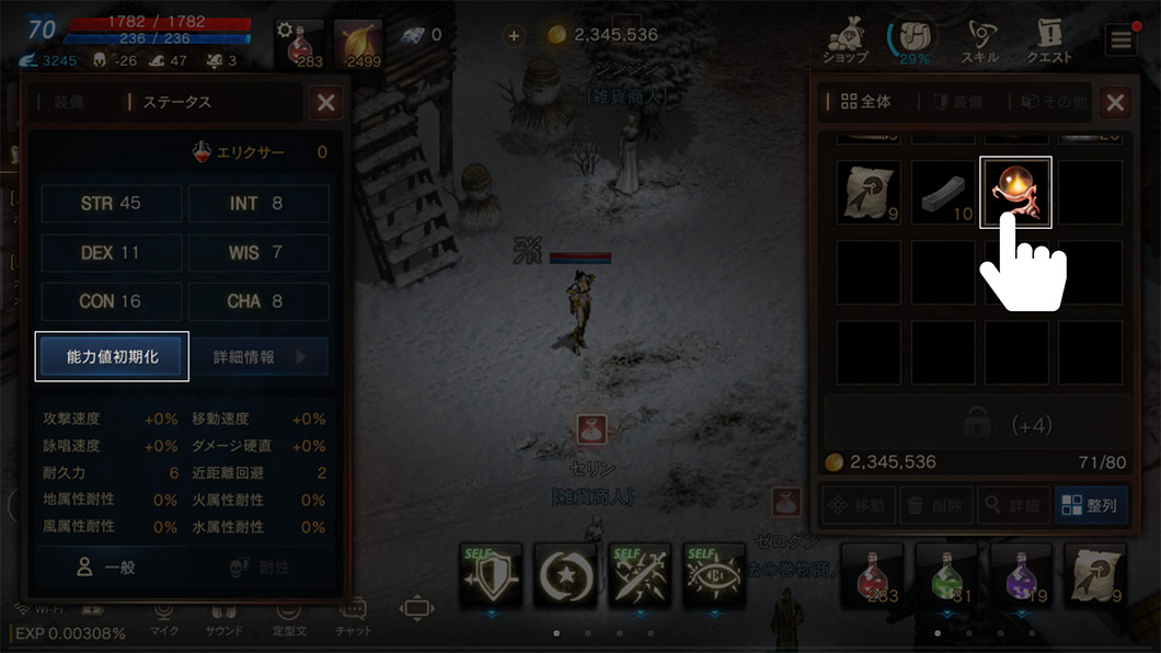 希望のロウソクを所持していると、能力値初期化ボタンが有効化され、ステータスを未配分状態に戻せます。