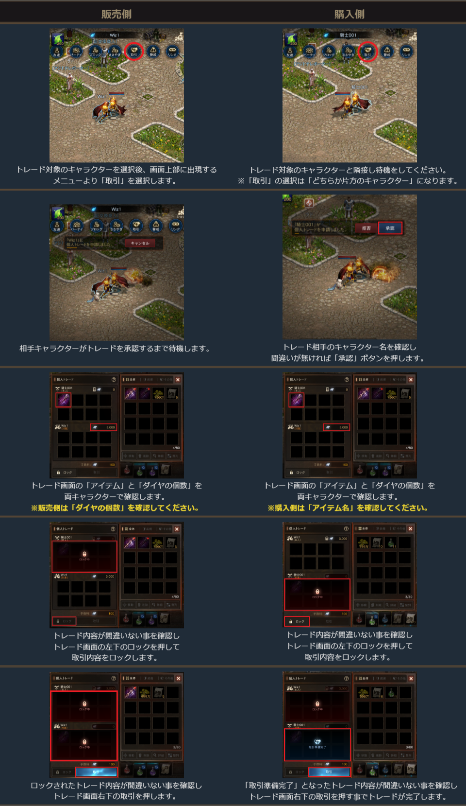 プレイヤー同士で直接アイテムを取引できます。