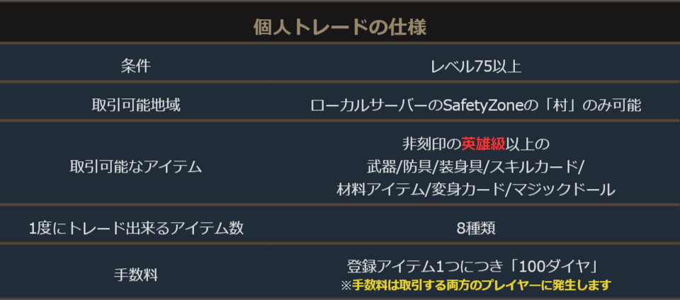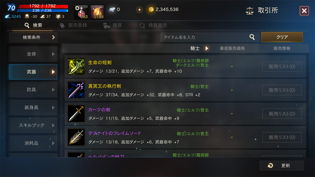 武器/防具/装身具/スキルブック/消耗品などリネージュMで使用されているアイテムは、取引所を介してプレイヤー間の取引ができます。(一部アイテムを除く)