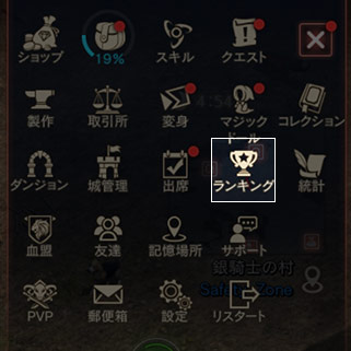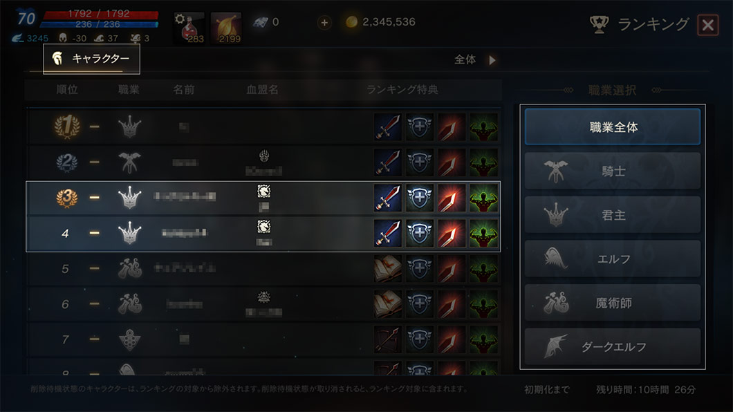 サーバー内の全体または職業別ランキングを確認します。