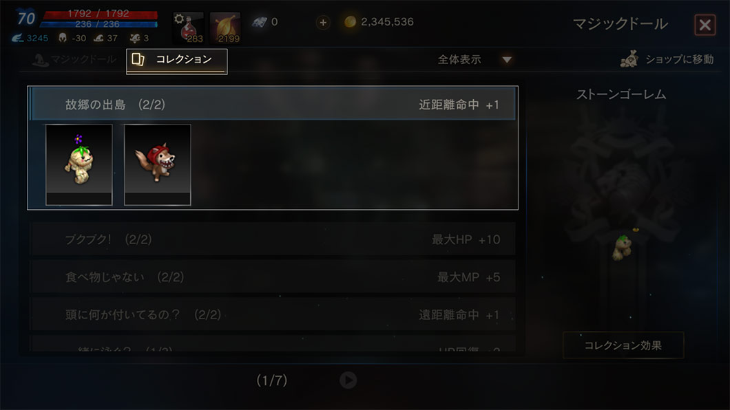 コレクションに合致するマジックドールを所持すると、追加のオプションが発生します。