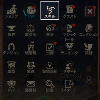 騎士の技術、君主のオーラなど職業固有のスキルを確認できます。