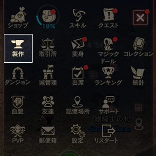 製作に必要な材料を集め、アイテムの製作ができます。