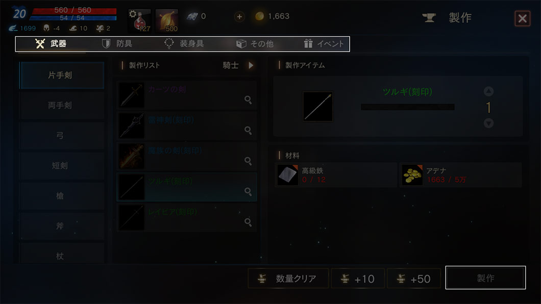 武器、防具、装身具などを製作できます。