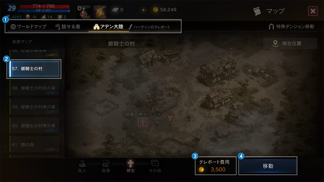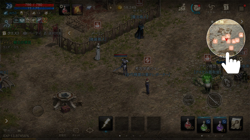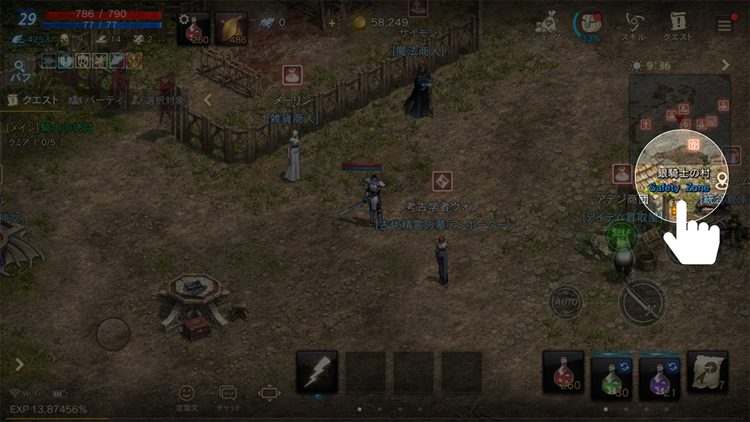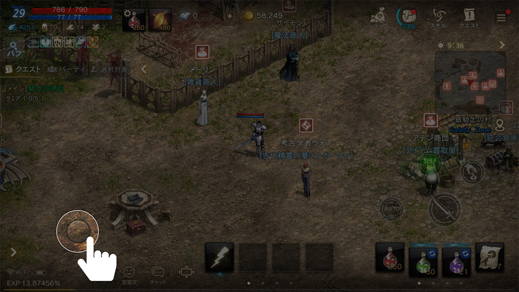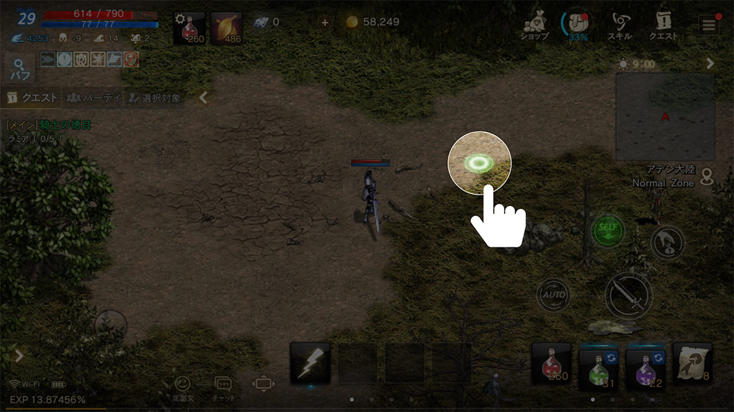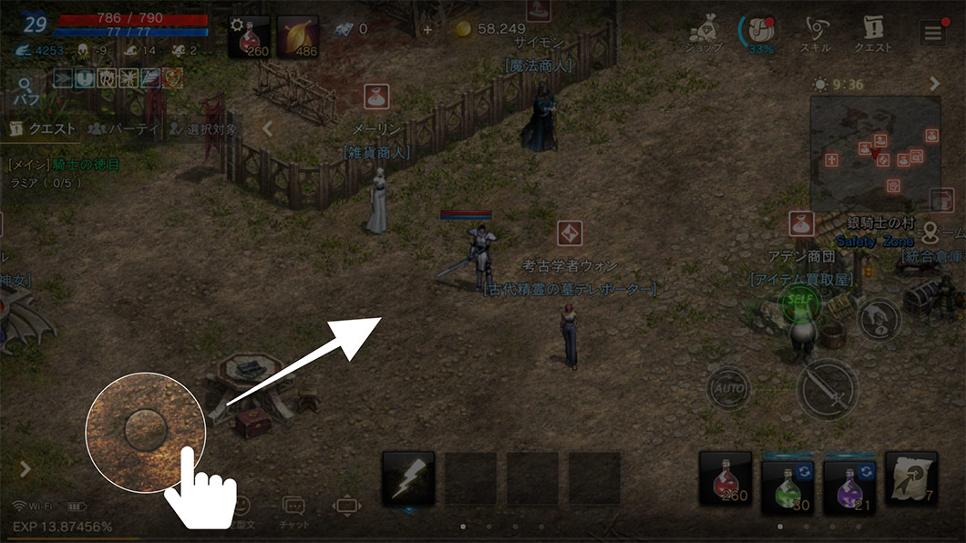 目的の場所をタップすると、キャラクターがその場所に移動します。