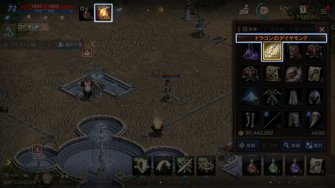 ショップメニューからドラゴンのダイヤモンドを購入できます。
