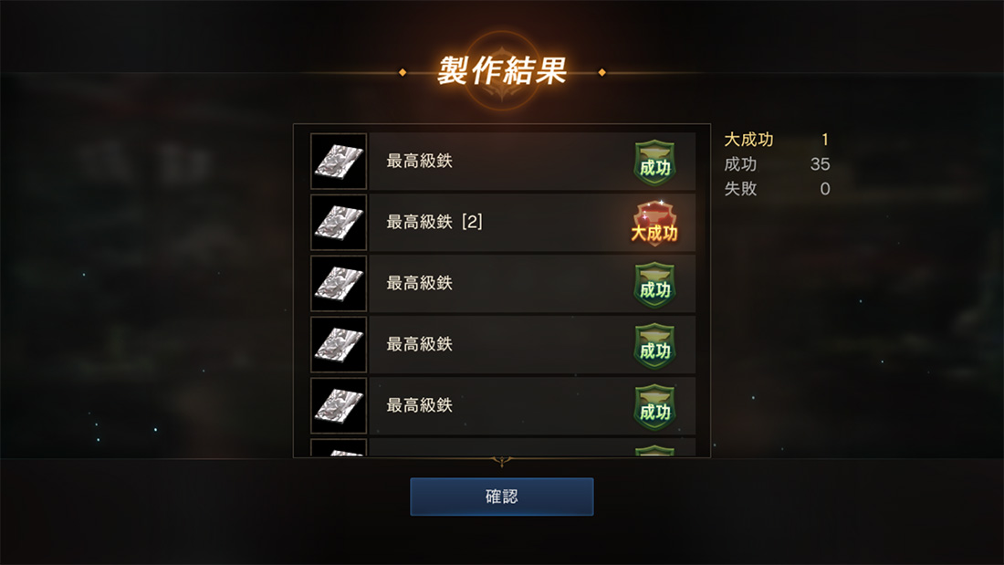 アイテム製作時に一定の確率で大成功が発生し、大成功時には生成数が増加したり、(重ねられるアイテムのみ)通常成功とは異なるアイテムが製作できたりします。
