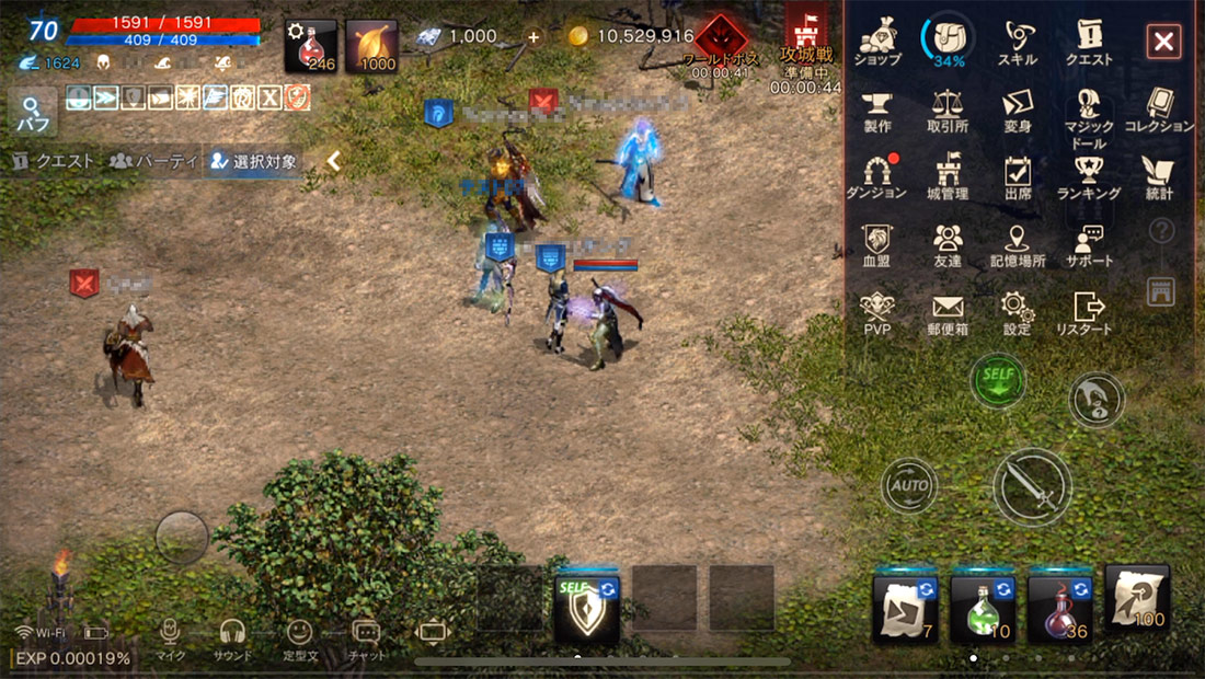 - キャラクターの名前は職業と数字で表示されます。(例)エルフ-1