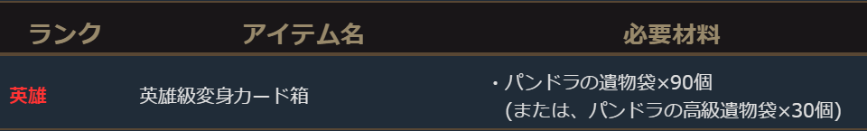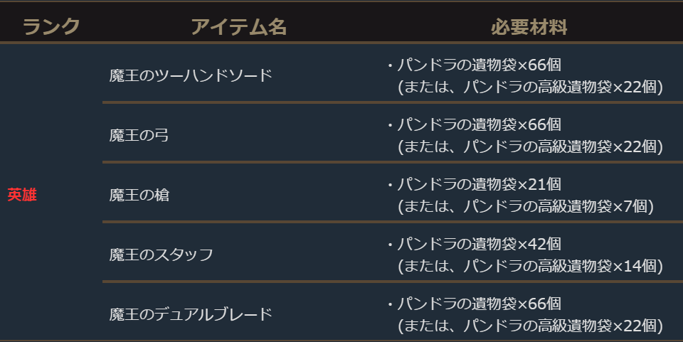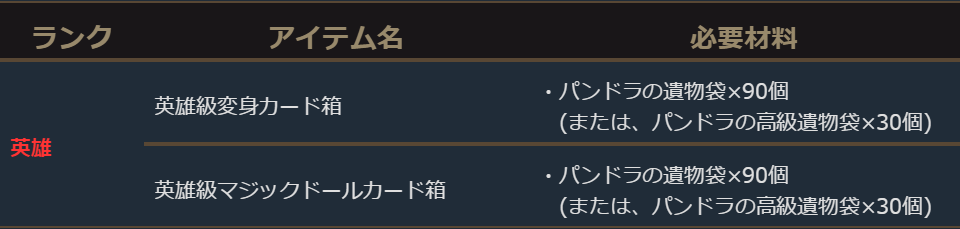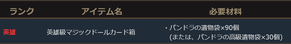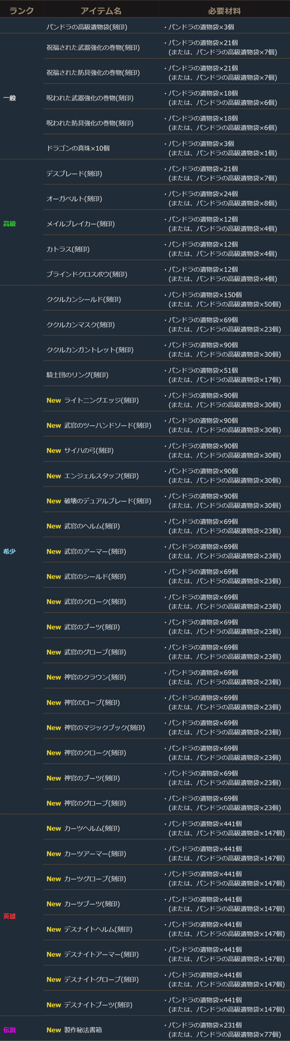 既に「パンドラの遺物袋」「パンドラの高級遺物袋」以外の材料を必要とする製作を行われたお客様への対応につきましては、こちらのお知らせをご確認ください。