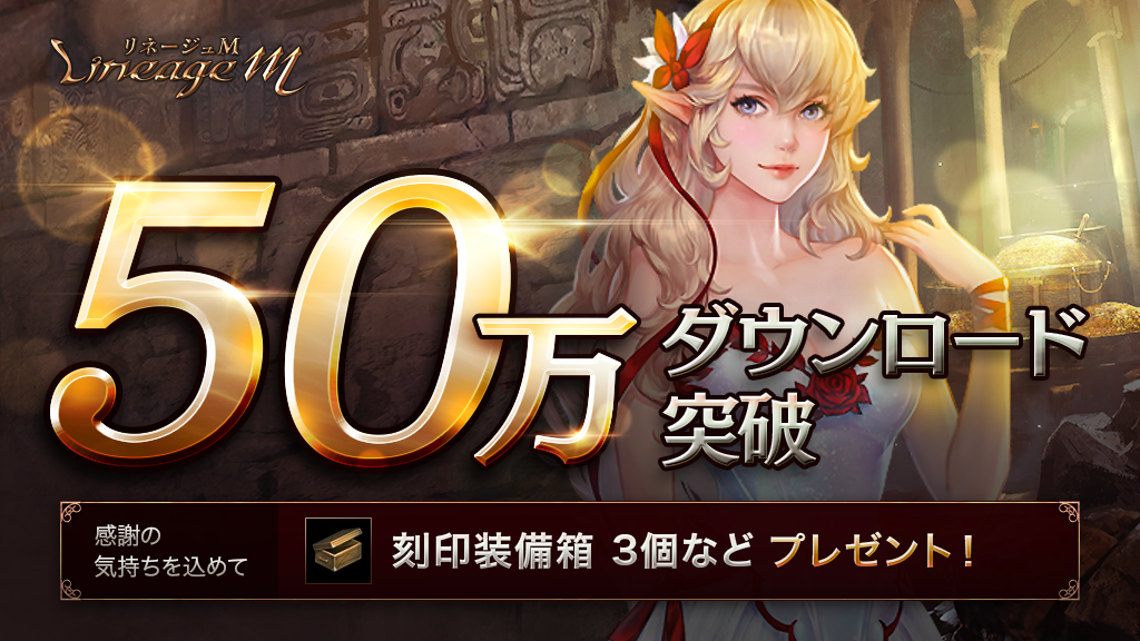 いつもご利用ありがとうございます。 リネージュMサービスチームです。 リネージュMがわずか5日間で50万ダウンロードを突破しましたので、お知らせいたします。