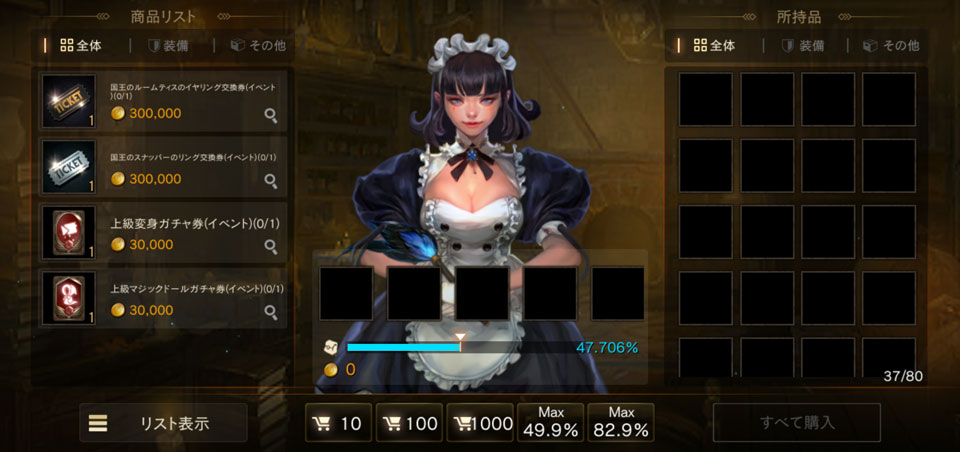 ※購入制限が表示されているアイテムは、制限回数購入すると購入できなくなります。