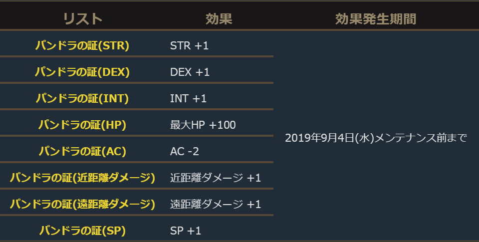 ※「パンドラの証」を材料に使用するコレクションは、2019年9月4日(水)メンテナンス以降は効果がなくなります。