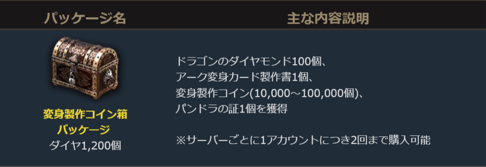 ※「変身製作コイン箱パッケージ」は1アカウントにつき2回のみ購入できます。