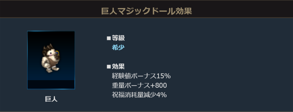 「巨人」は狩りによる経験値を15%アップする効果を持っているので、ぜひチェックしてみてください!