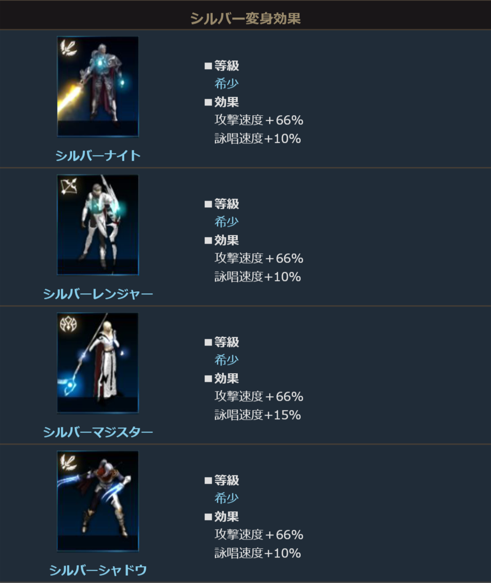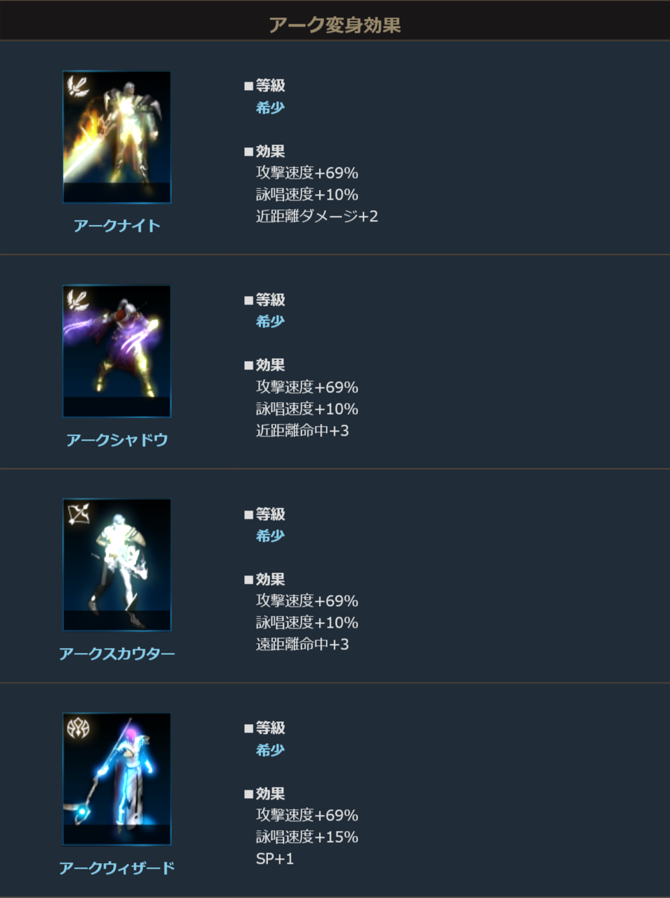 アークシリーズは職業ごとにさまざまな種類がありますが、どの変身も攻撃速度+69%など強力な能力を秘めているのでぜひチェックしてみてください!