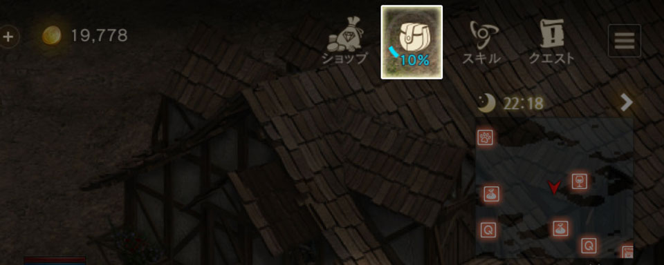 画面右上にある「バッグ」に記載された数値を見れば、キャラクターの「重量の状態」が分かるみたいッス。