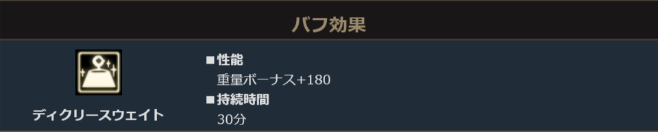 魔法「ディクリースウェイト」は、使用すると重量ボーナス+180の効果が発動するッス!