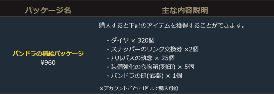 パンドラの補給パッケージは、価格はそのままで、商品内容が1週間ごとに更新されます!