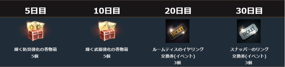 連続出席日数に応じて、追加報酬を受け取ることができます。