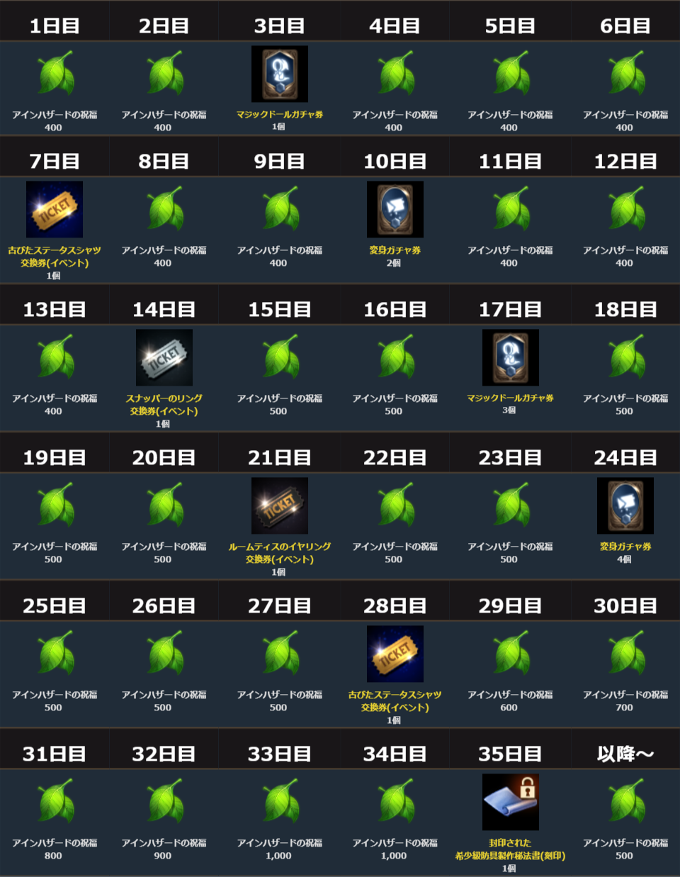 毎日受け取ることができる「出席報酬」の内容が更新されましたのでお知らせします。