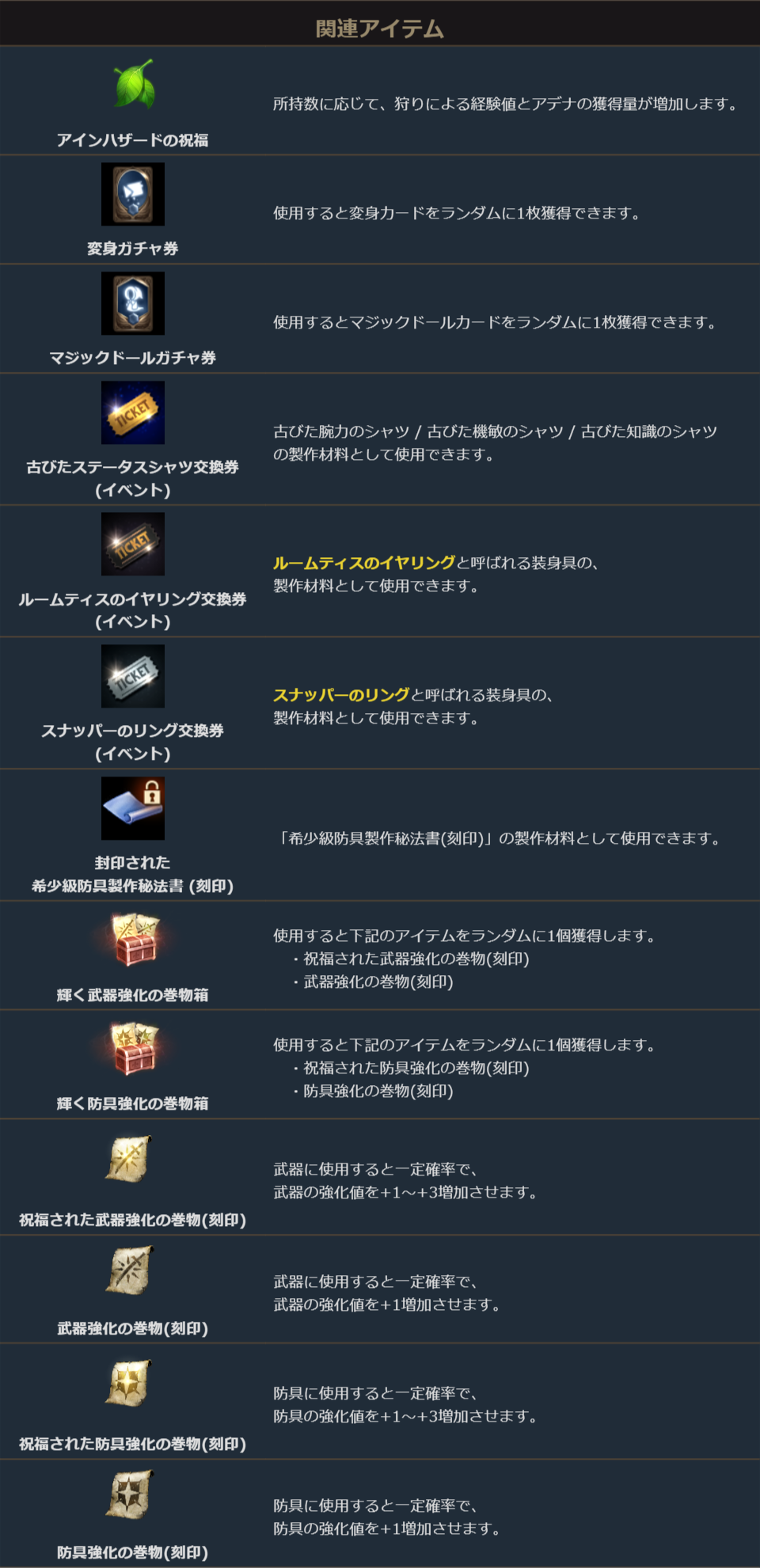 ※一部アイテムが期間終了後も未使用の場合、一定期間が経過すると自動で削除されます。詳しくは各アイテムの詳細をご確認ください。