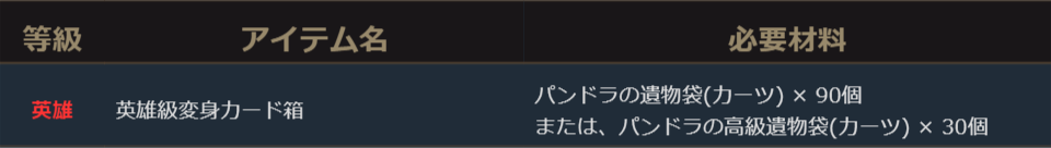 パンドラの遺物箱パッケージ(招き猫)から獲得したパンドラの遺物袋(カーツ)の使い道としてぜひご検討ください!