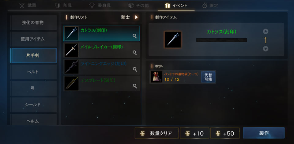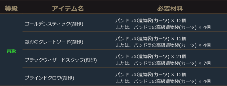 イベント期間中、パンドラの遺物袋(カーツ)やパンドラの高級遺物袋(カーツ)を使用して製作を行うことができます。