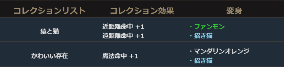 近距離・遠距離の両方に対応できる貴重な変身なうえ、関連コレクションも登場していますので、この機会にぜひ獲得してみてください。