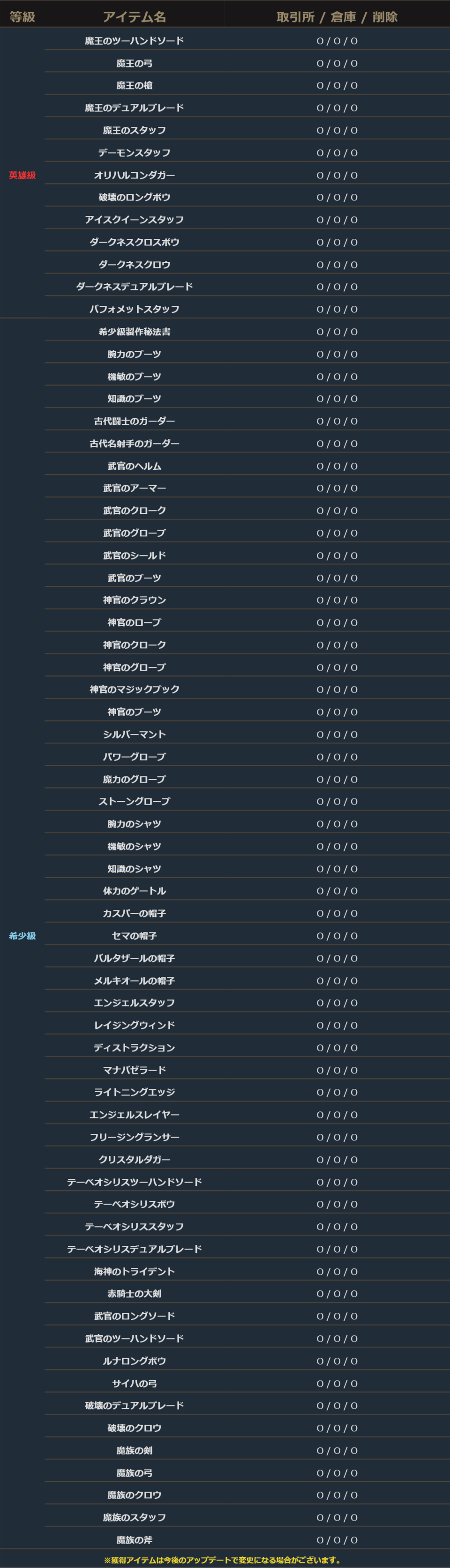 取引可能な希少級装備を手に入れるチャンスなのでぜひご確認ください!