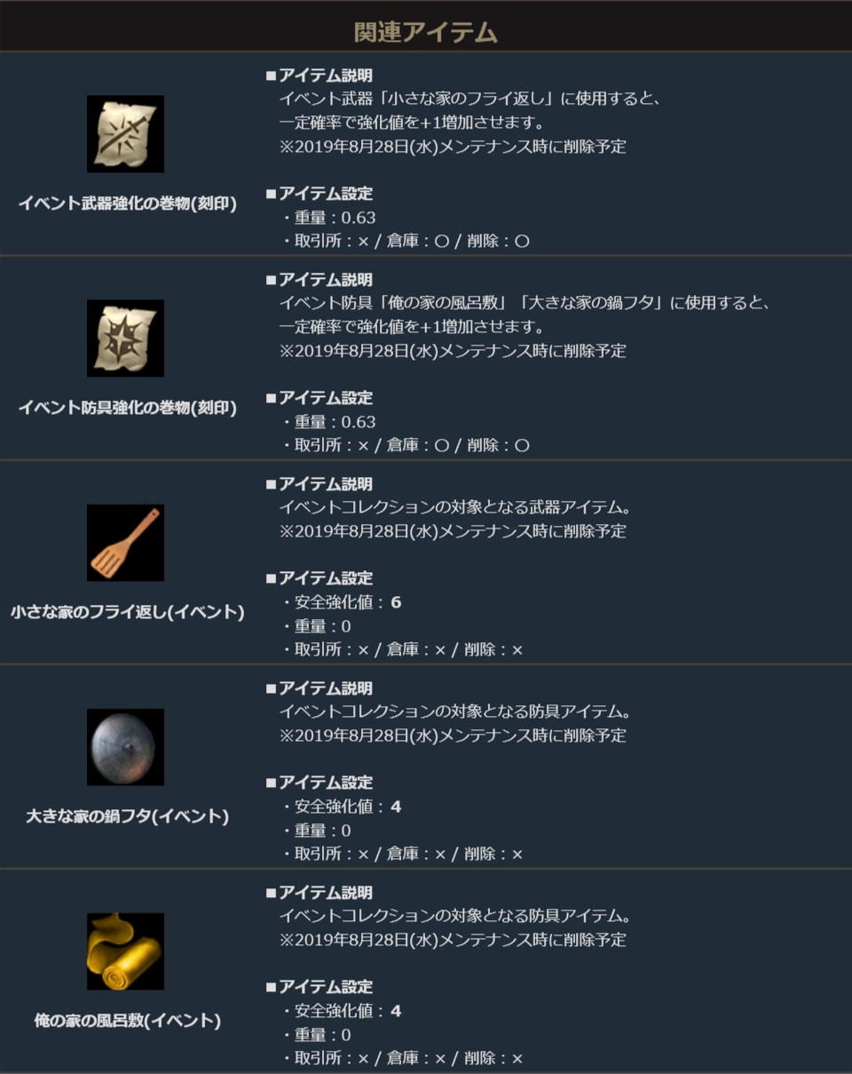 2019年8月21日(水)メンテナンス後~2019年8月28日(水)メンテナンス開始前まで(予定)