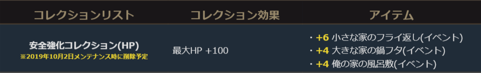 各イベント装備アイテムを安全強化の最大まで強化することで完成するコレクションです。