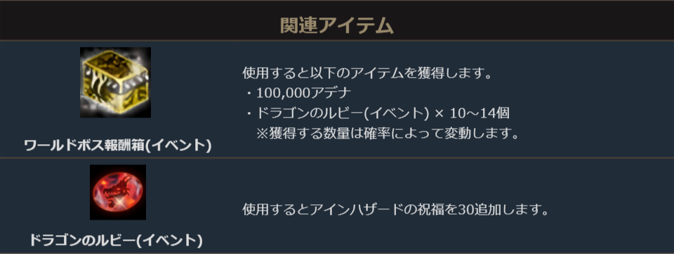 ワールドボスに関連するイベントクエストが開催される期間限定イベント「ワールドボス強化週間」についてお知らせいたします。