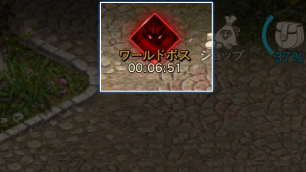 ワールドボスは入場時間になると、画面の右上に「ワールドボス」アイコンが表示されます。
