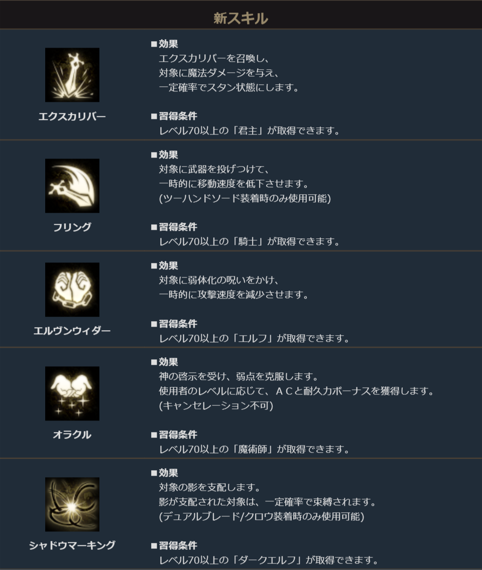 各職業に追加された新スキルは下記をご確認ください。
