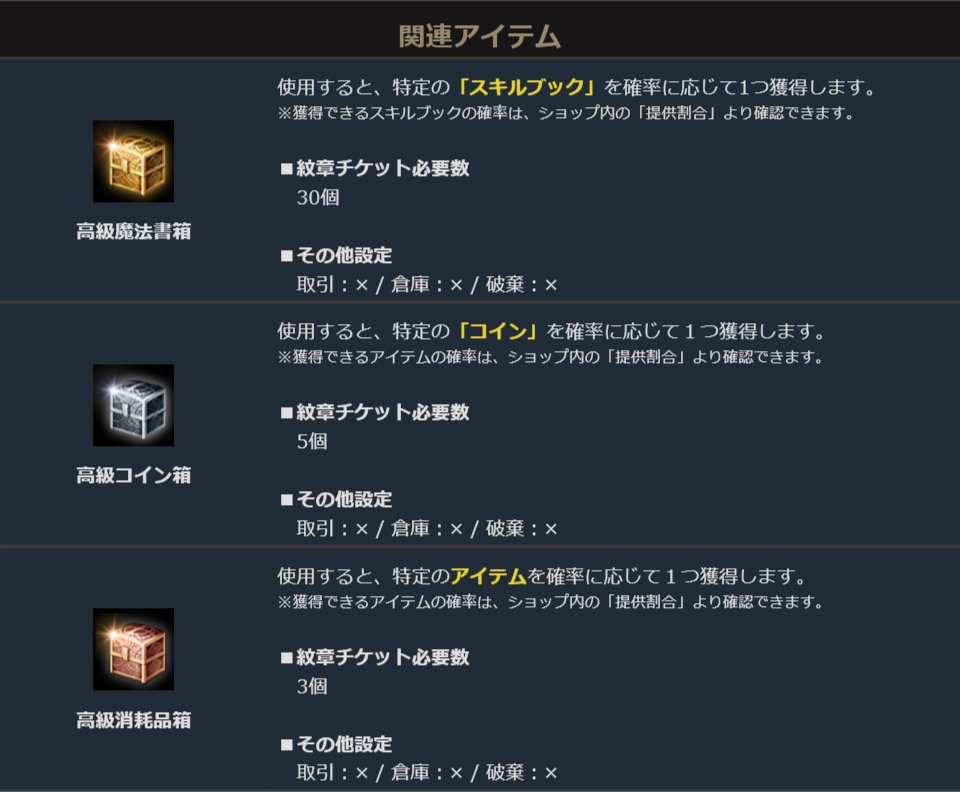 今回の販売では、「守護の紋章箱11個」を購入すると「紋章チケット」を獲得します。