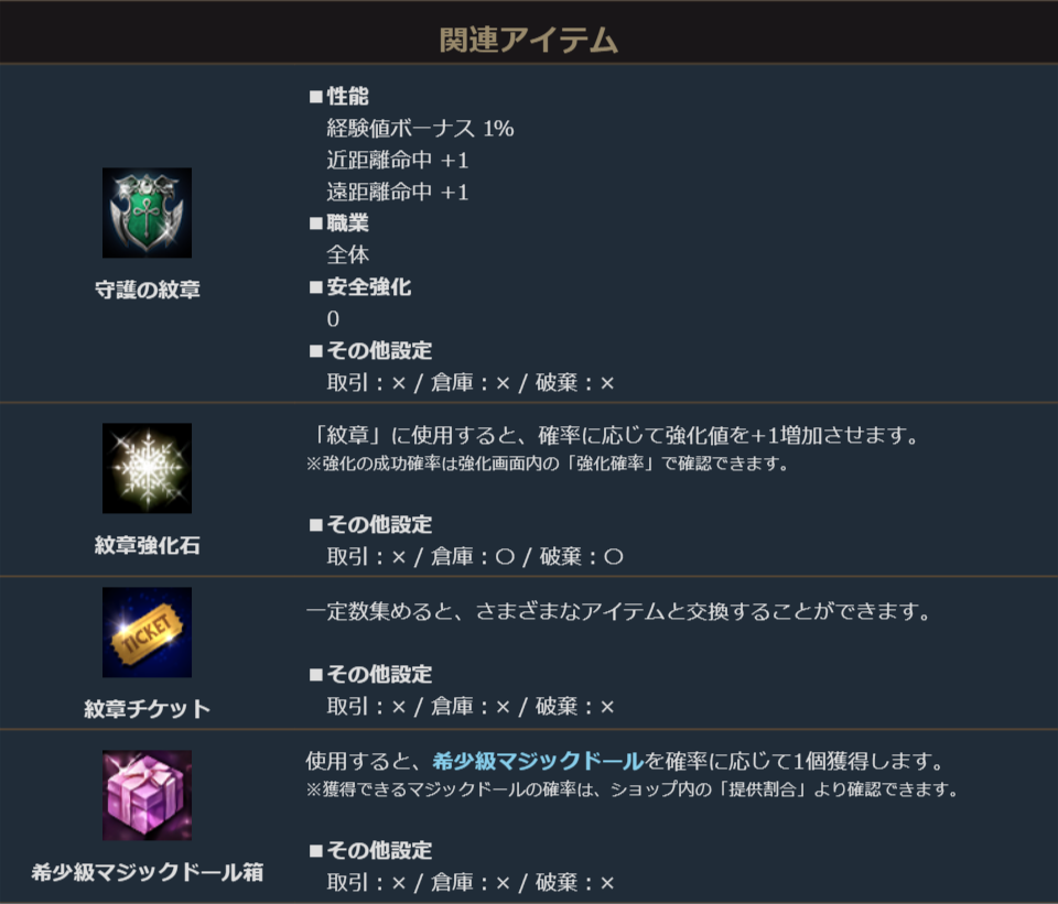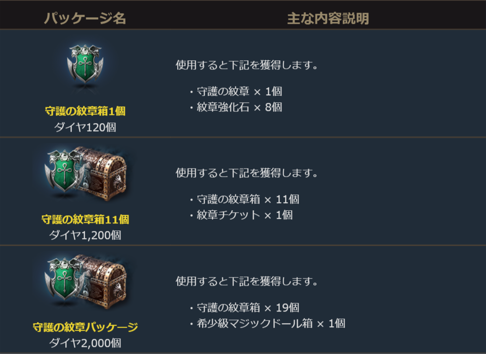 ※なお、「守護の紋章」の再販時期は未定となりますが、今後のアップデートで常時販売となる予定です。