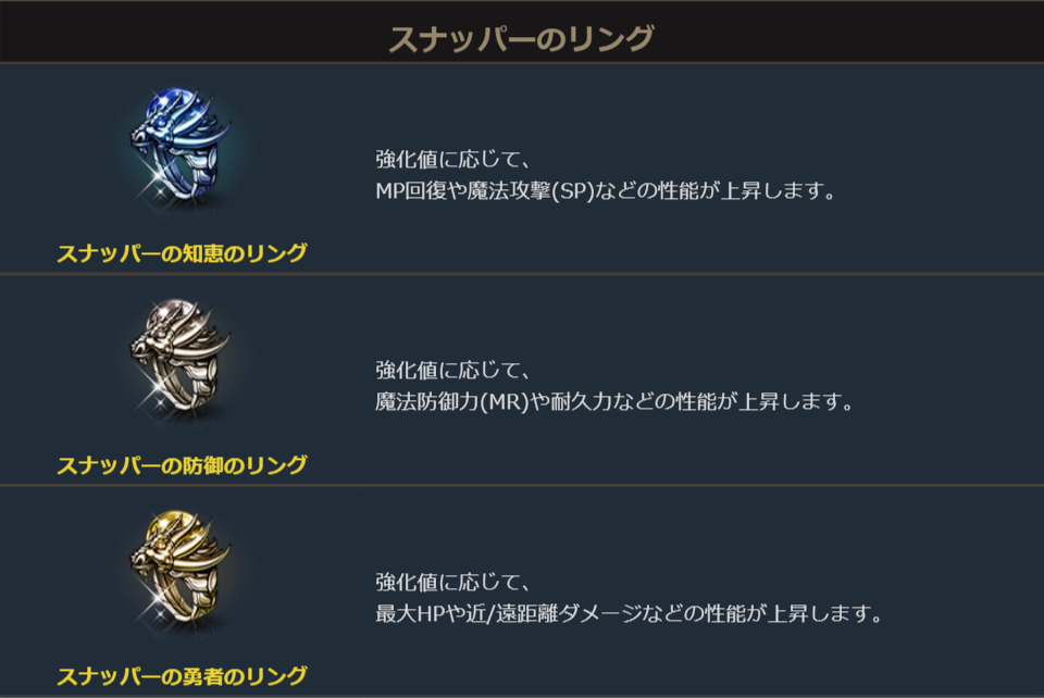 「スナッパーのリング交換券」を使って、製作画面で各リングに対応した「スナッパーのリング箱」を製作することができます。