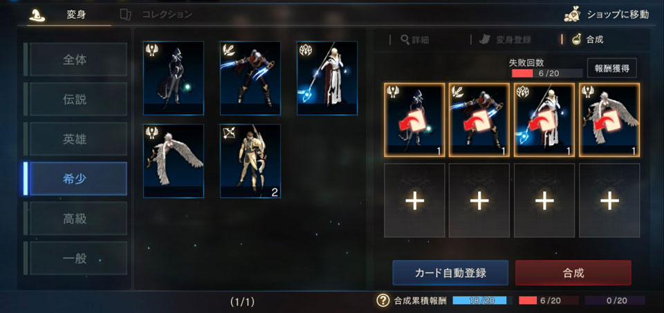 等級が同じ変身やマジックドールを4枚手に入れたら、合成して新しいカードの獲得に挑戦しましょう!