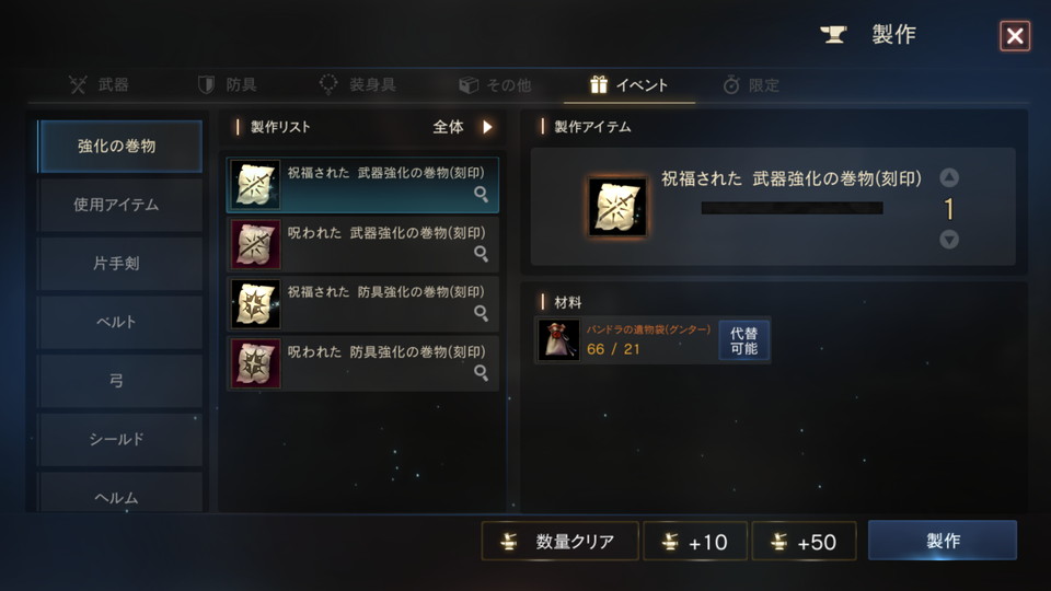 イベント期間中、パンドラの遺物袋(グンタ―)やパンドラの高級遺物袋(グンタ―)を使用して製作を行うことができます。