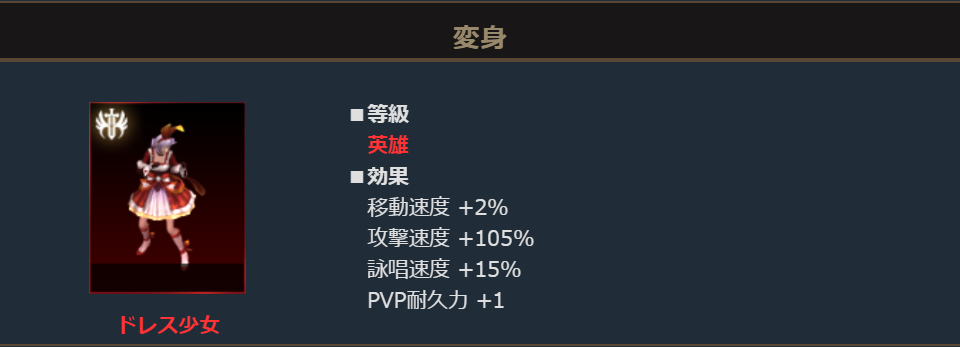 ・英雄変身「ドレス少女」に関する内容を追加しました。