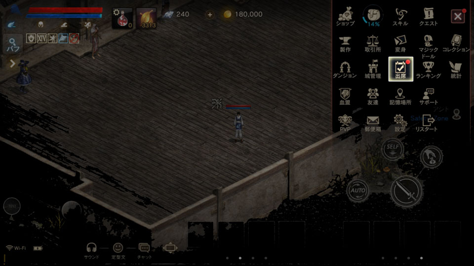 受け取りたいキャラクターでゲームに接続し、メニュー内の「出席」を選択してアイテムを受け取りましょう!